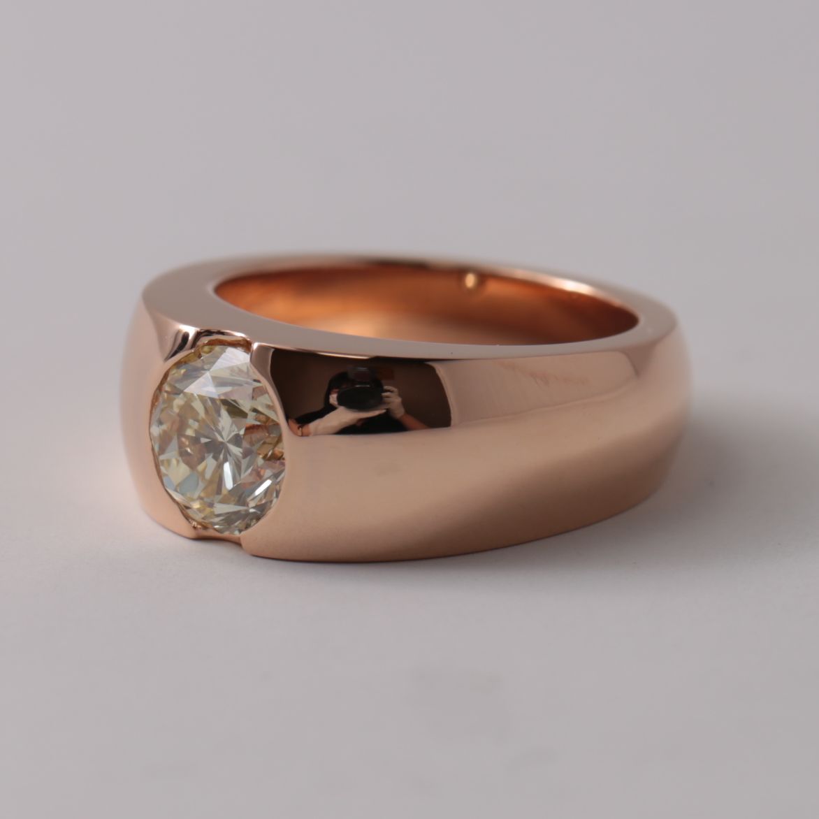 1.5カラットを超えるダイヤモンドを地金で包み込むように留め、本来の輝きを際立たせると同時に、衣服へのひっかかりが少なくデイリーに使いやすい構造を目指しました。