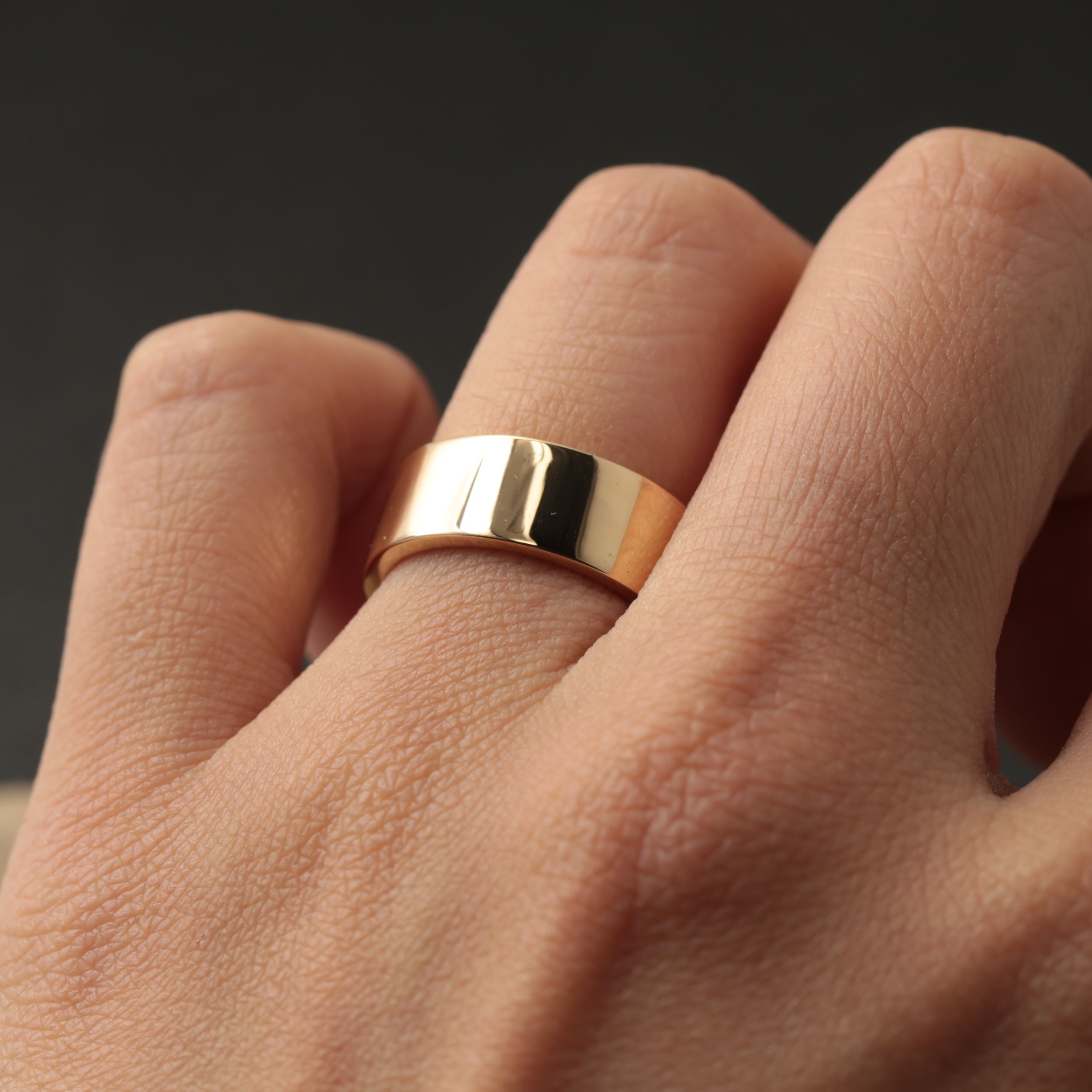 K18イエローゴールド製 幅7mm、10号サイズにて製作 プラチナ製への素材変更も承っております。 フルオーダーにて製作しますので、サイズ、幅厚み等ご相談ください。 |
