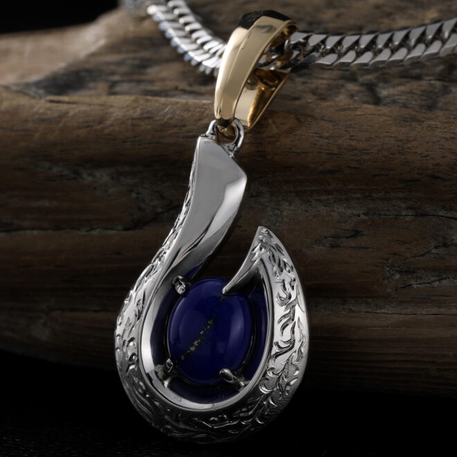 オパールとプラチナの釣り針モチーフ ペンダントトップ