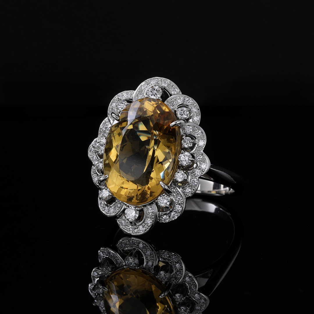 今回ご紹介するのは、12ctを超える圧倒的な存在感を放つゴールデンベリルのルースを主役にした、特別なオーダーリング。