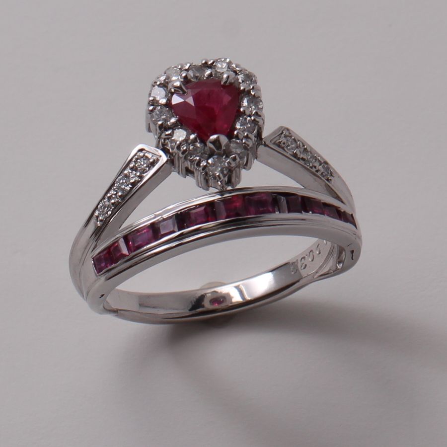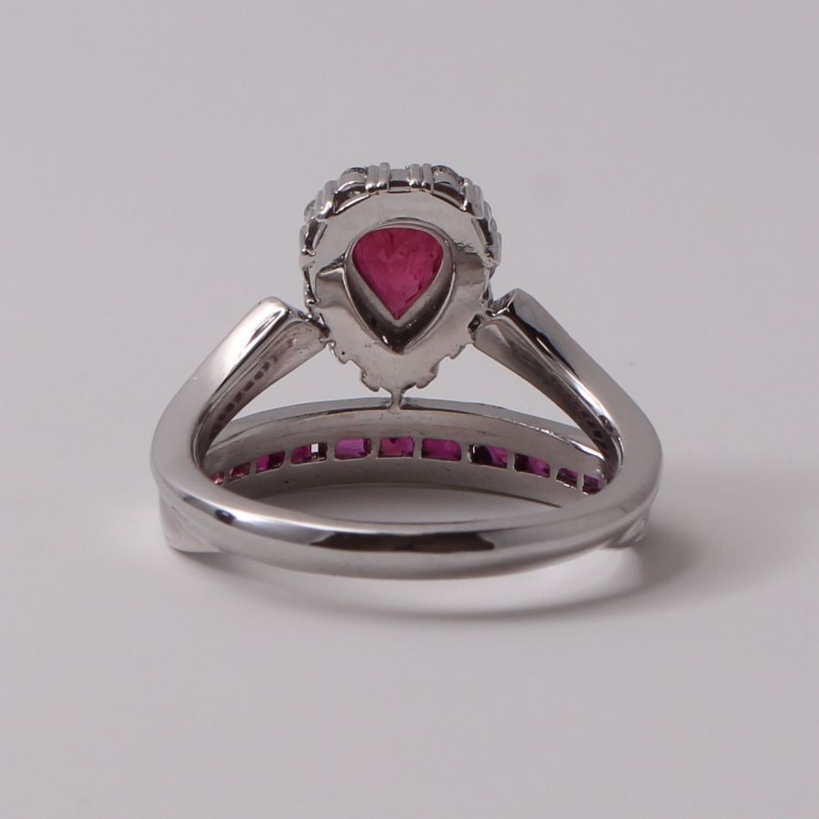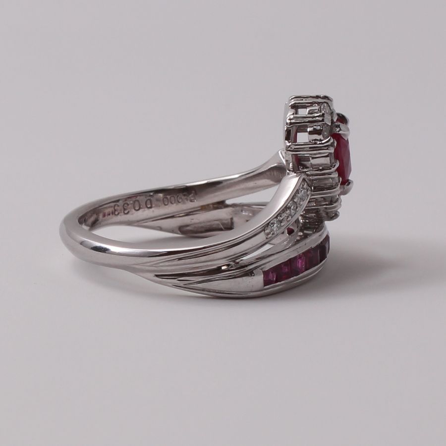情熱的なルビーの赤と、プラチナの清らかな輝き、そしてダイヤモンドのきらめきが調和し、指先に気品と華やぎを添えます。