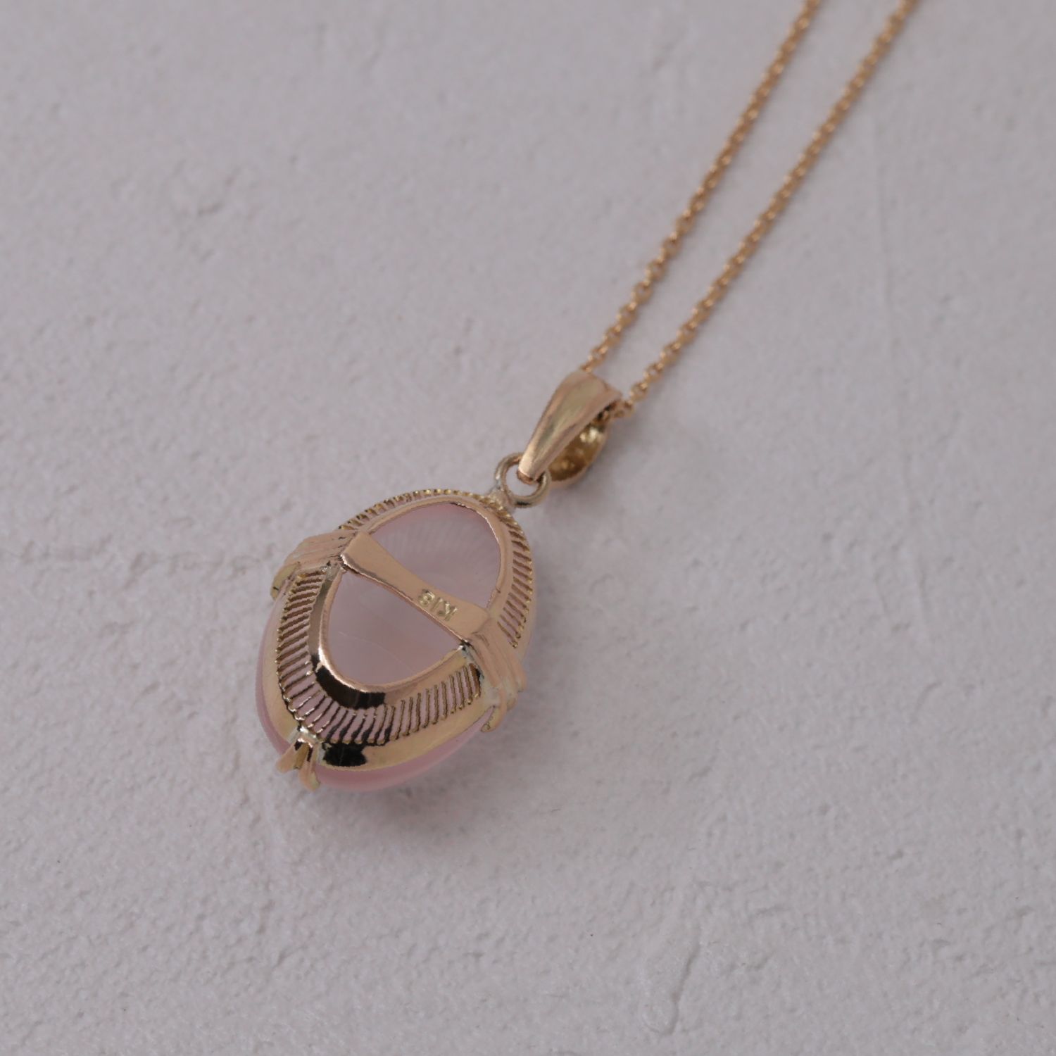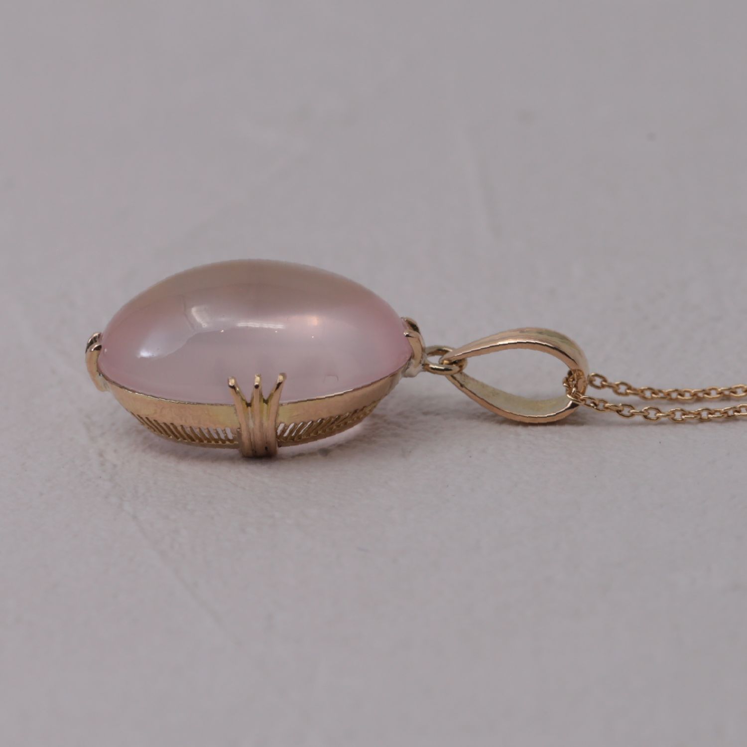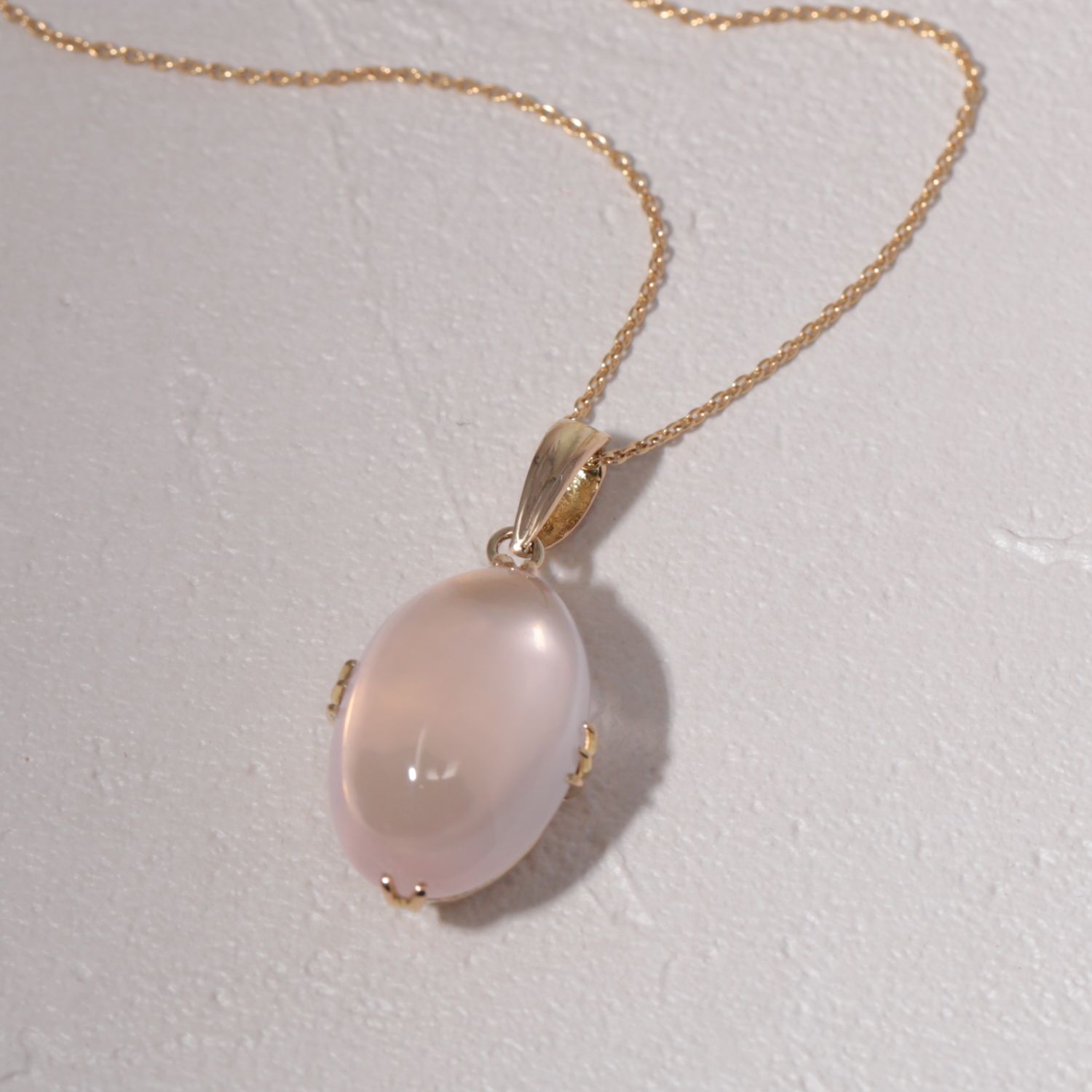 K18イエローゴールド製、ローズクォーツの色石ペンダント。