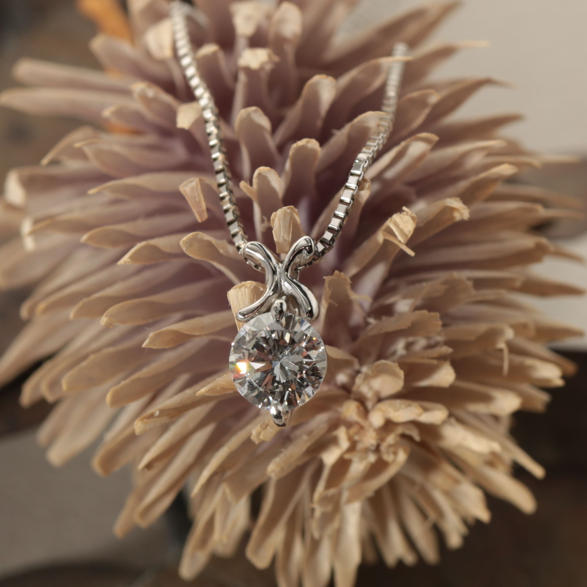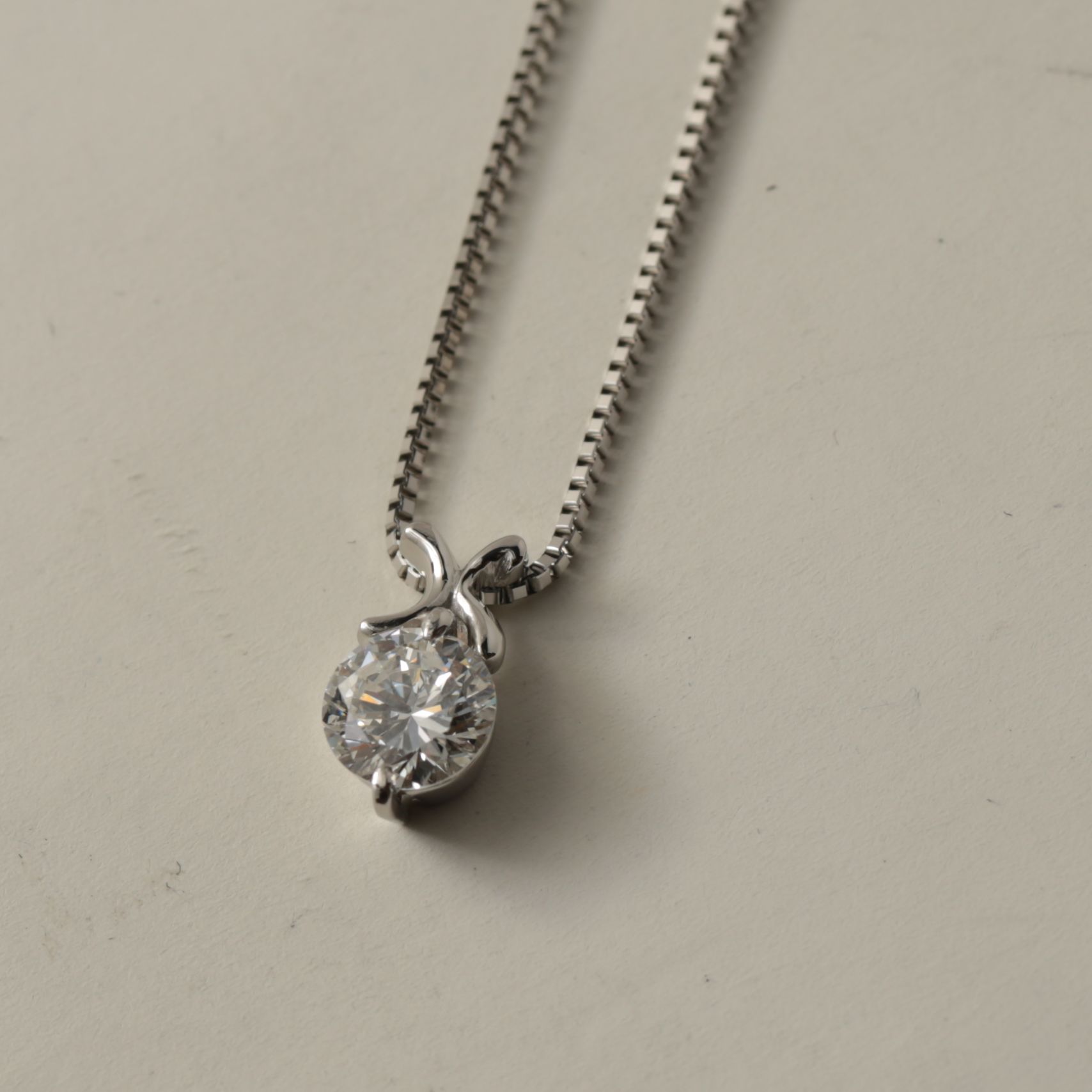 天然ダイヤモンド0.718ct。その凜とした輝きを最大限に引き出すため、Pt900でお作りした特別なペンダントです。