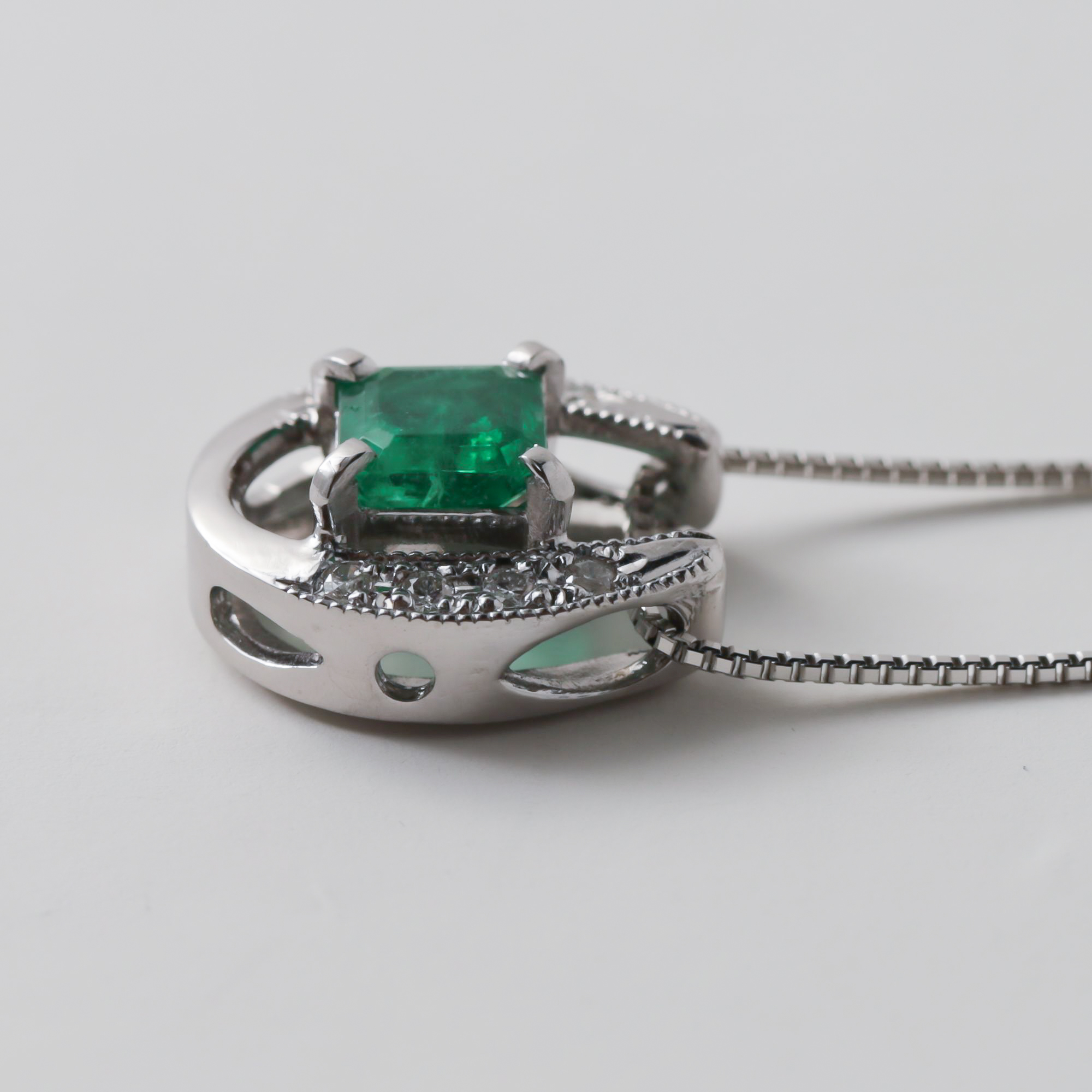 Pt900製エメラルドペンダント。