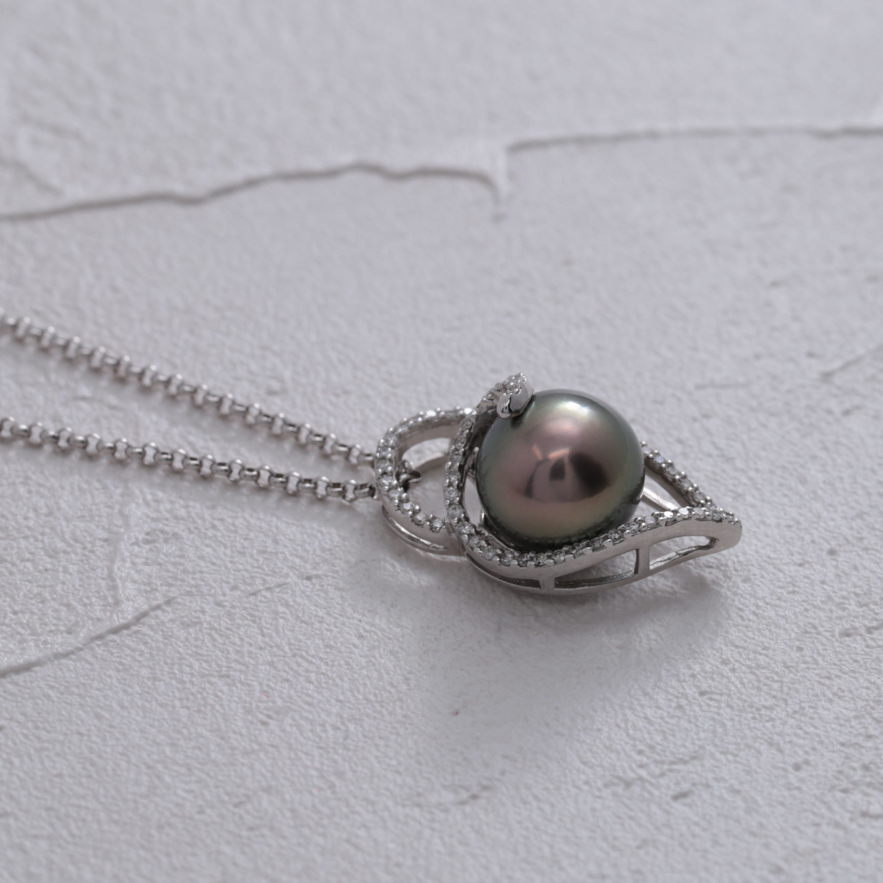 こちらは11.5mmという堂々としたサイズの珠を、18金ホワイトゴールドのペンダントに仕立てた既製品です。