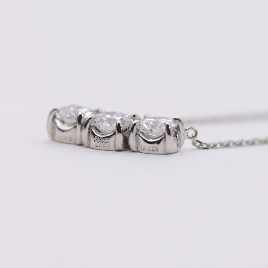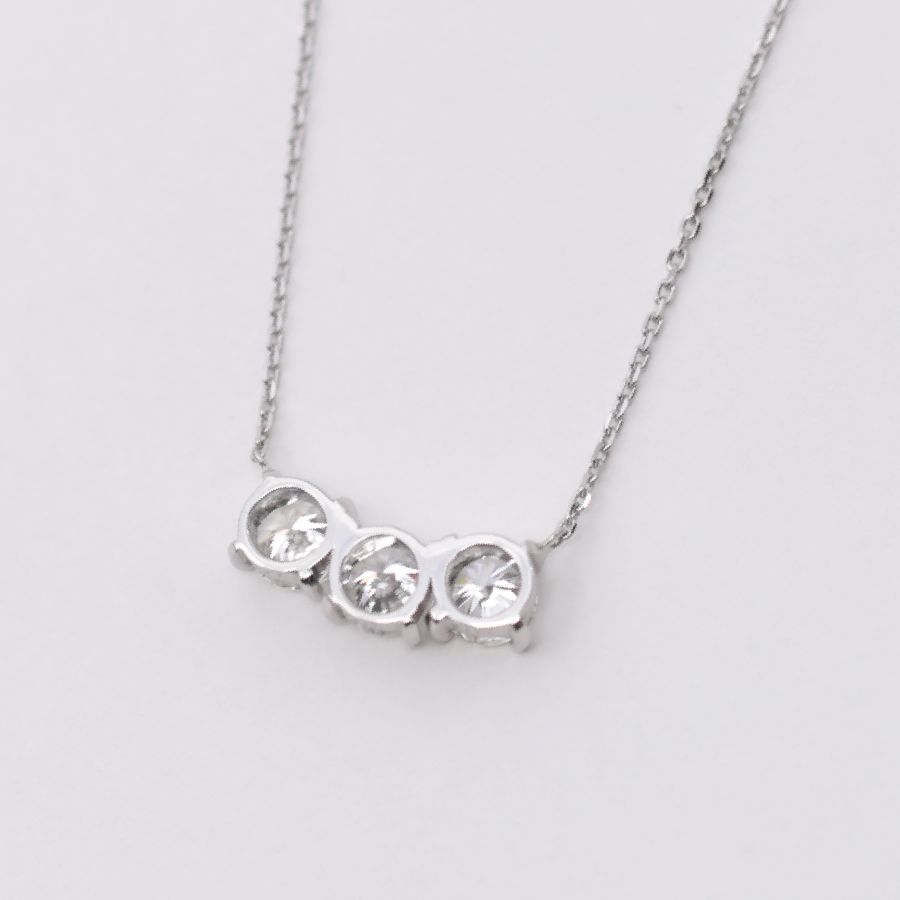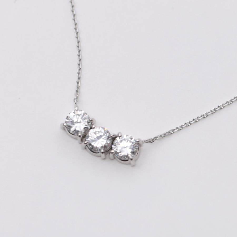 お手持ちのペンダントから美しいダイヤモンドを1石お預かりし、品質を合わせた2石を追加、合計3石を横一列に並べた、シンプルで上品なデザインへとリモデルいたしました。