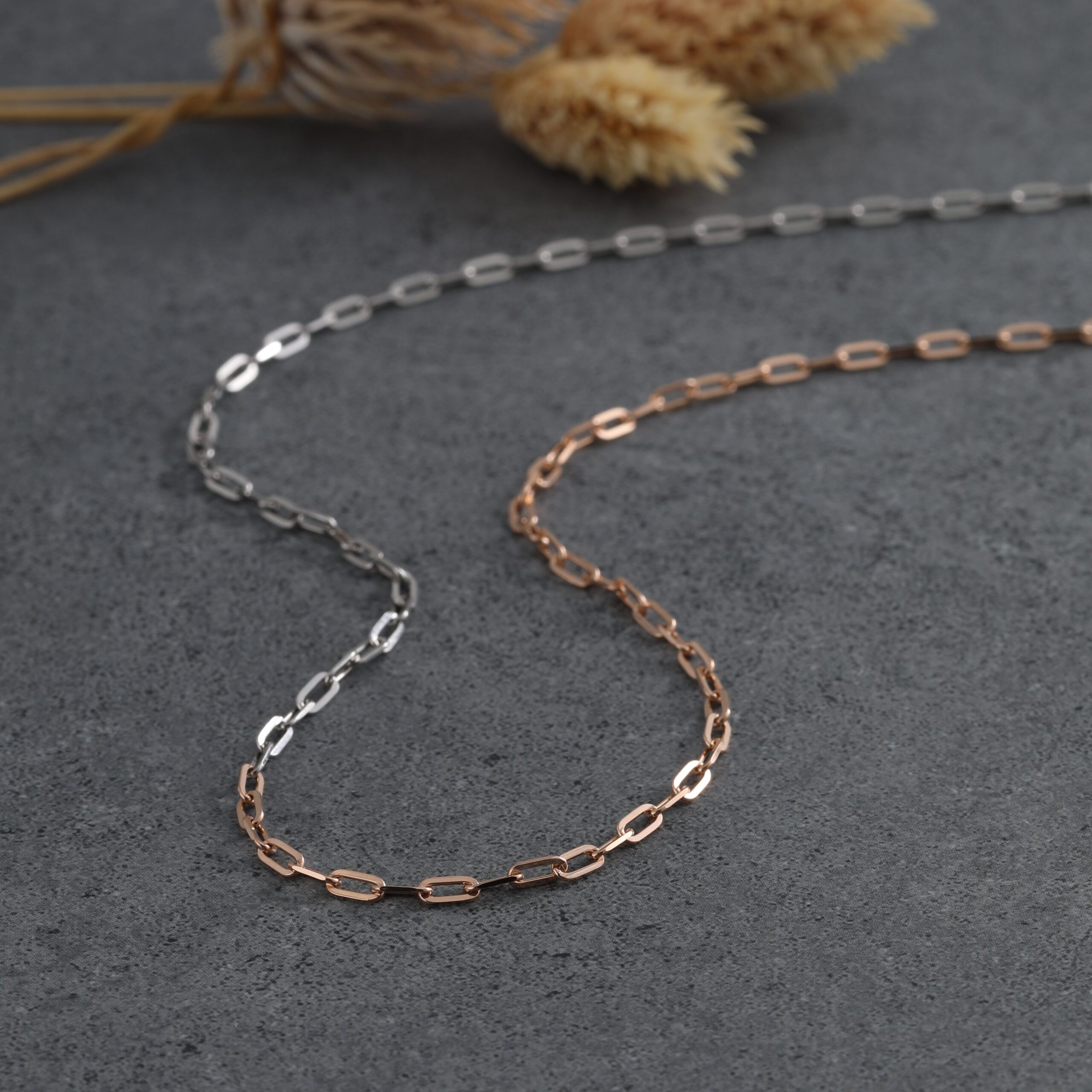 プラチナとピンクゴールド、ふたつの異なる素材を組み合わせたコンビチェーン。
