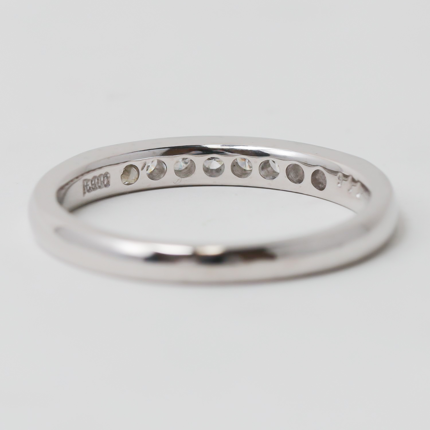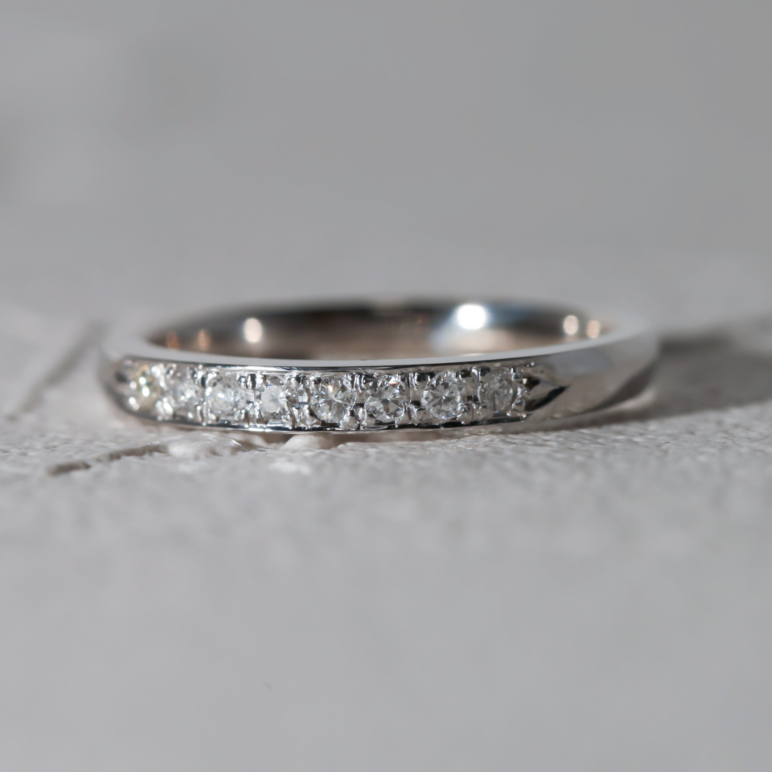 こちらはリングから取り出した8個のメレダイヤを生かし、新たにお仕立てしたPt900製の一文字リングです。