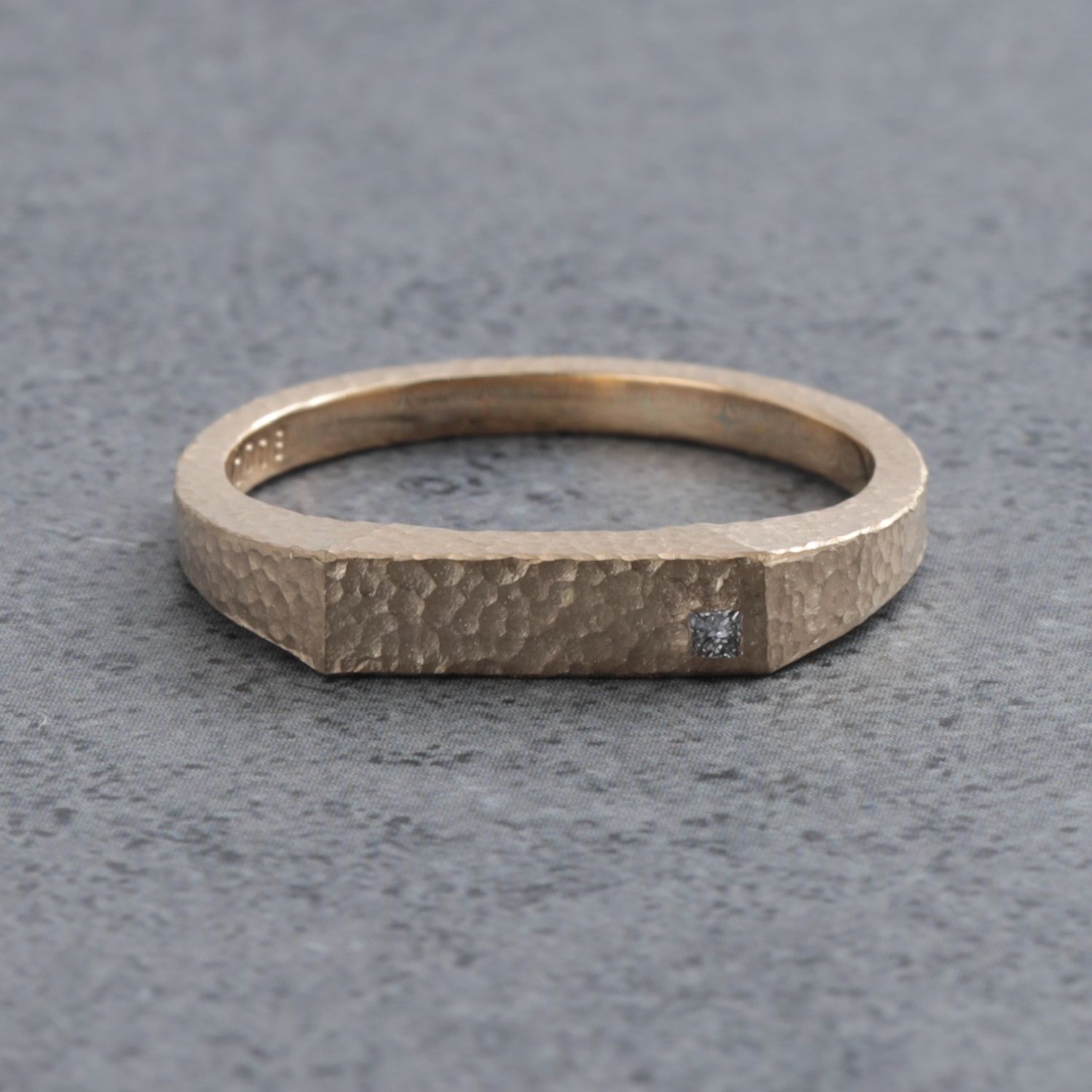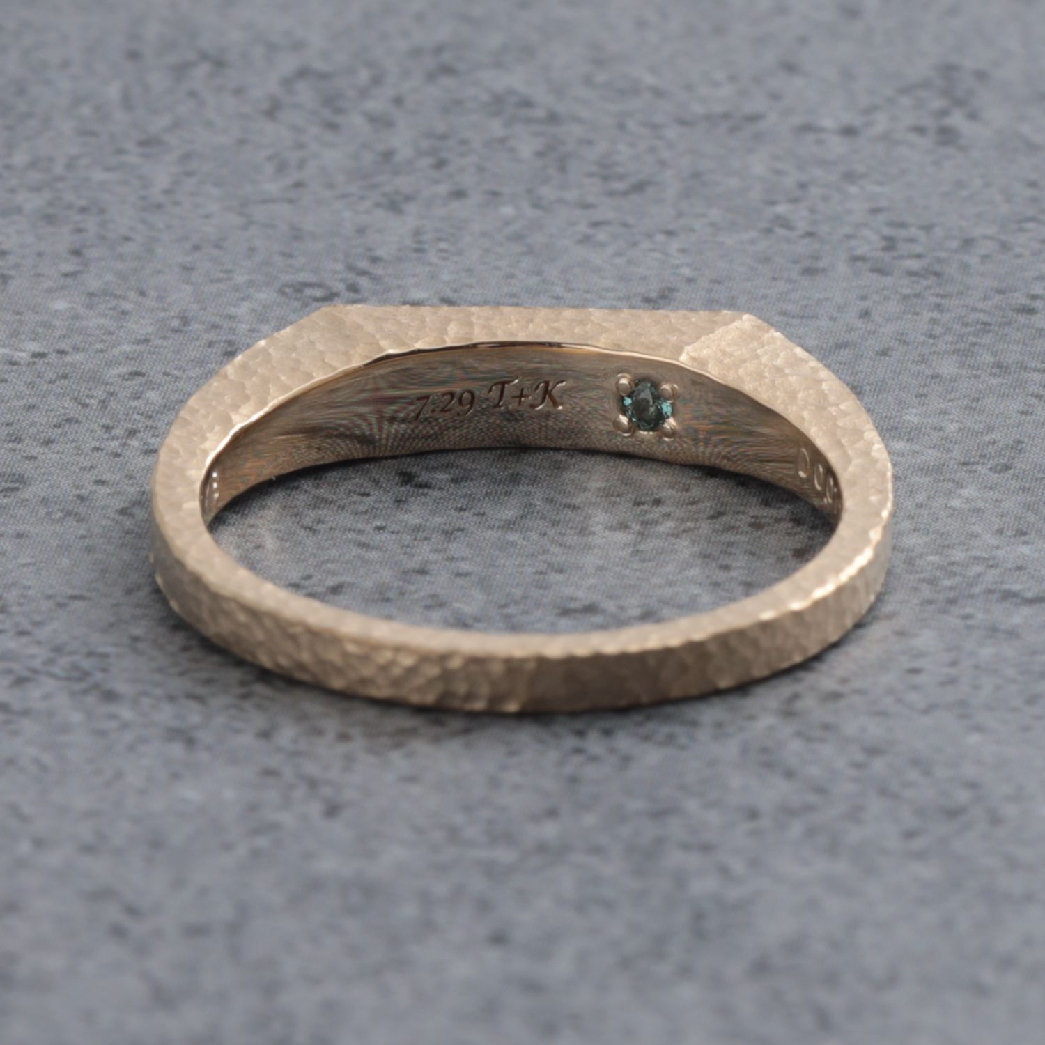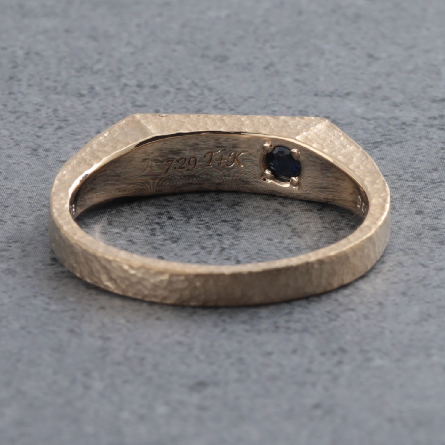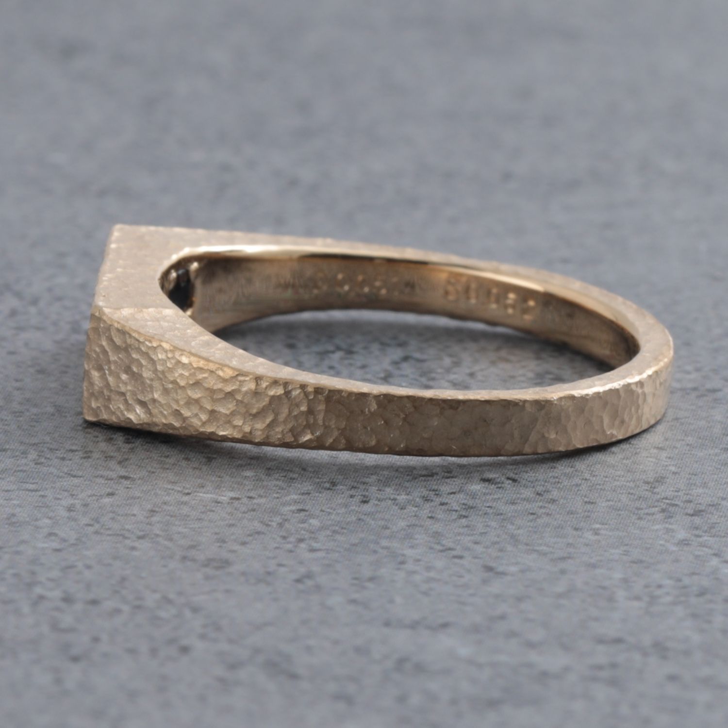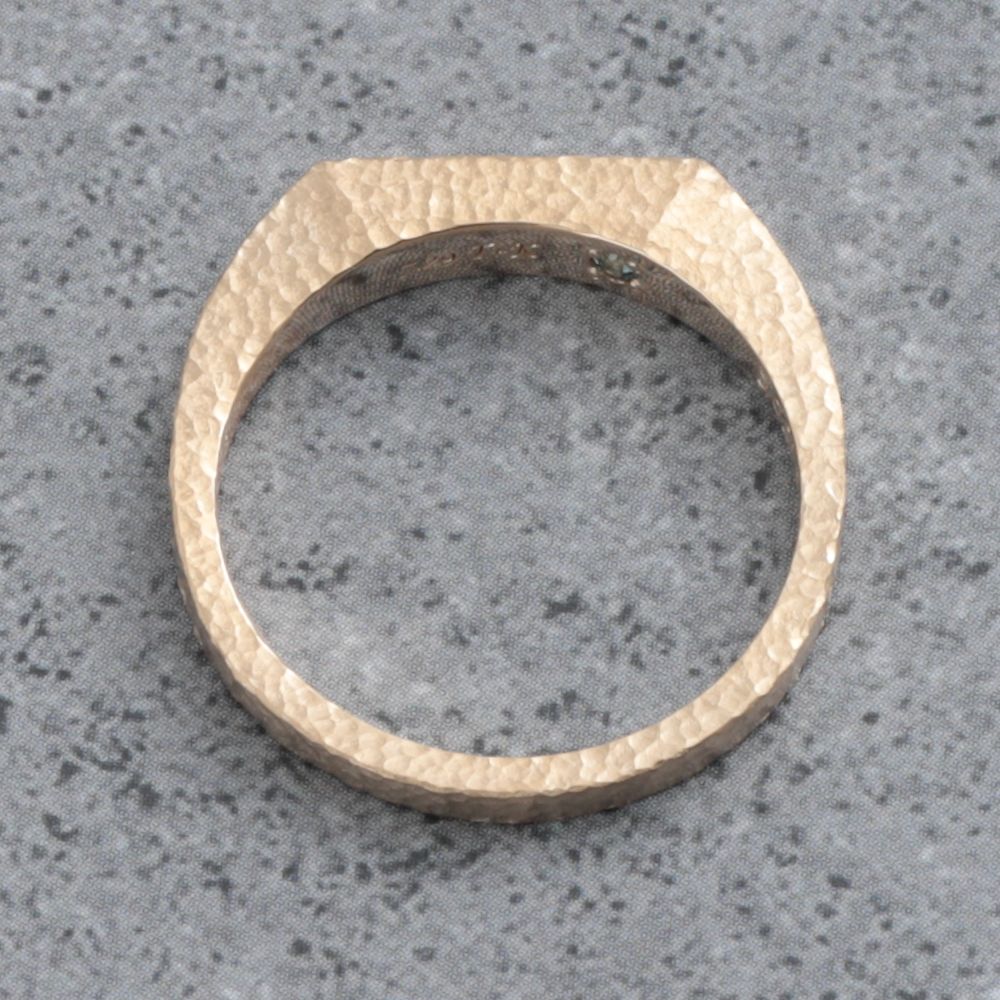 上質な槌目仕上げと細身の印台リングを思わせるフォルム。
