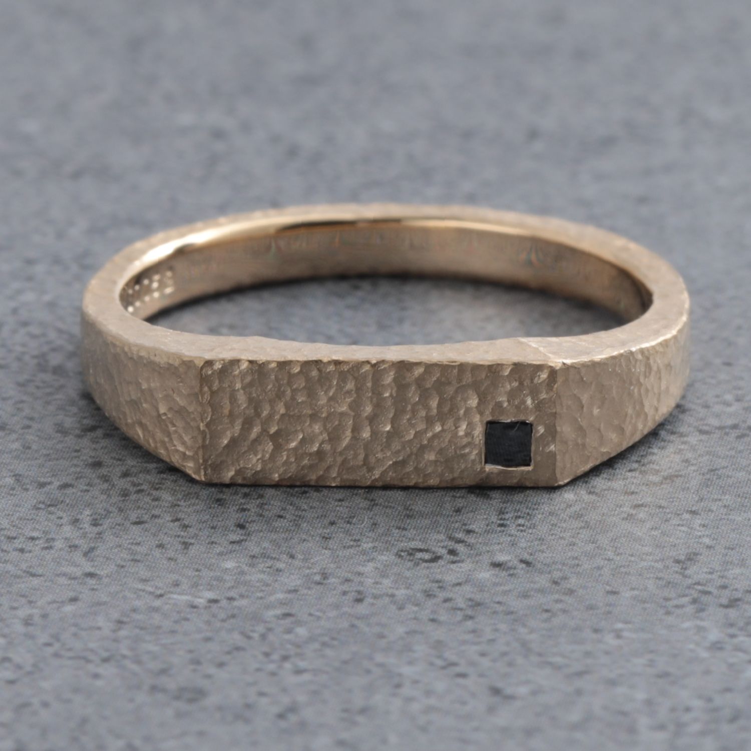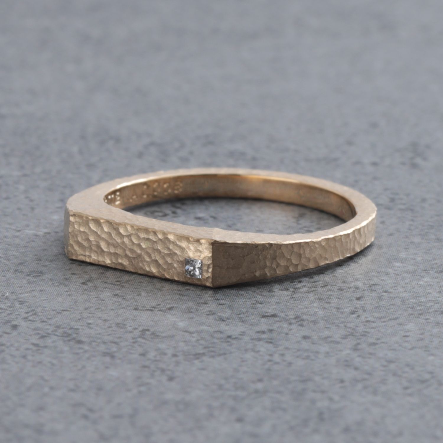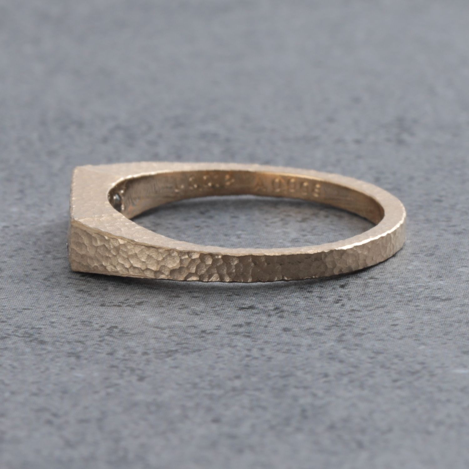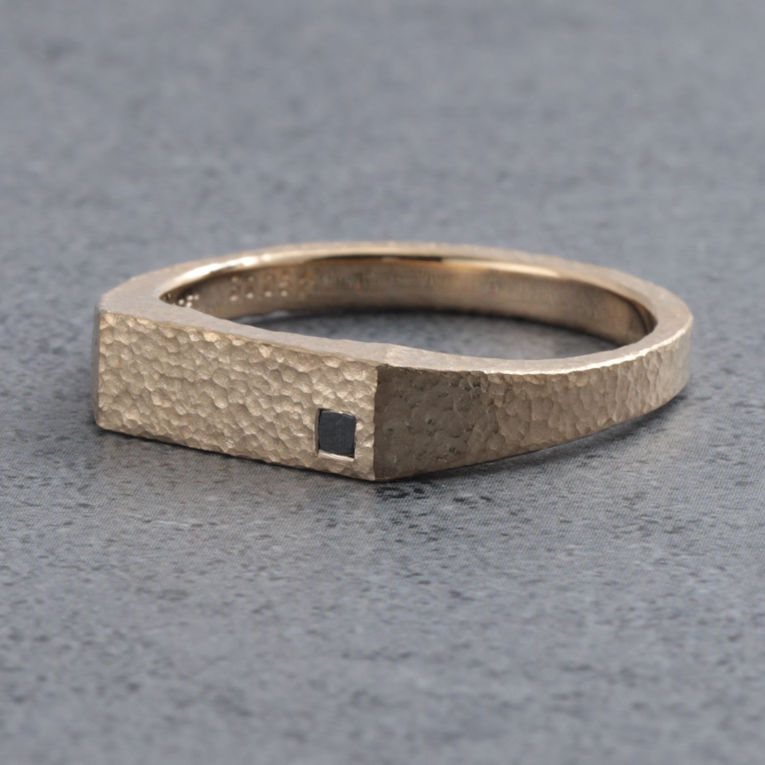 上質な槌目仕上げと細身の印台リングを思わせるフォルム。