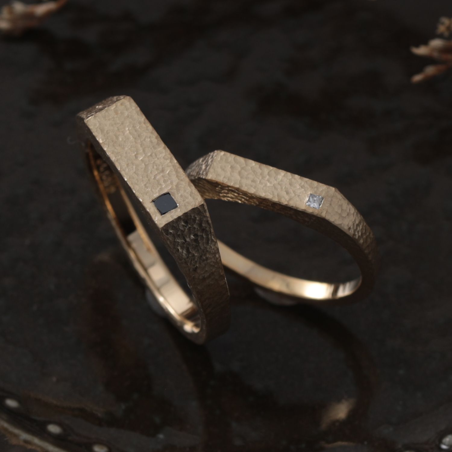 女性用には透明なダイヤモンドを、男性用にはブラックダイヤモンドをセッティング。