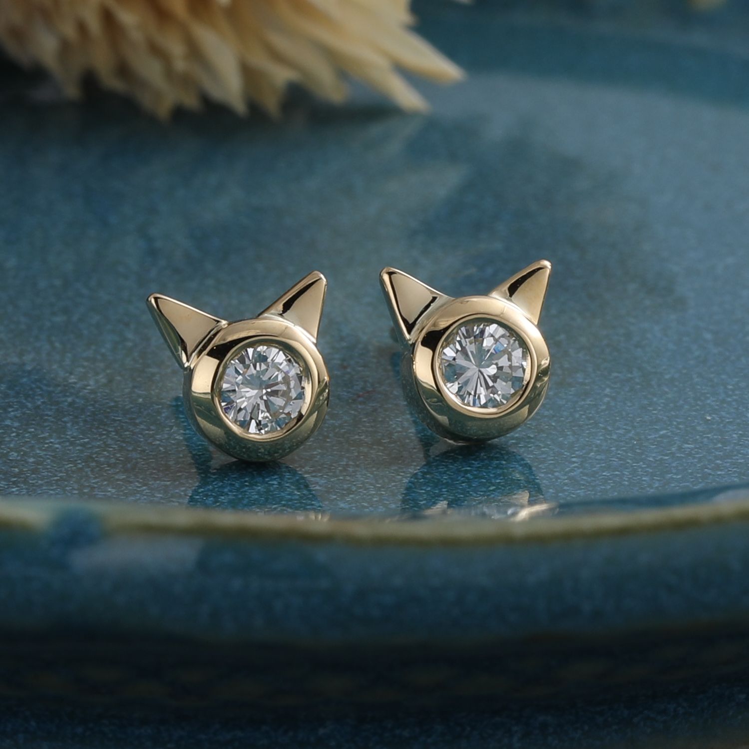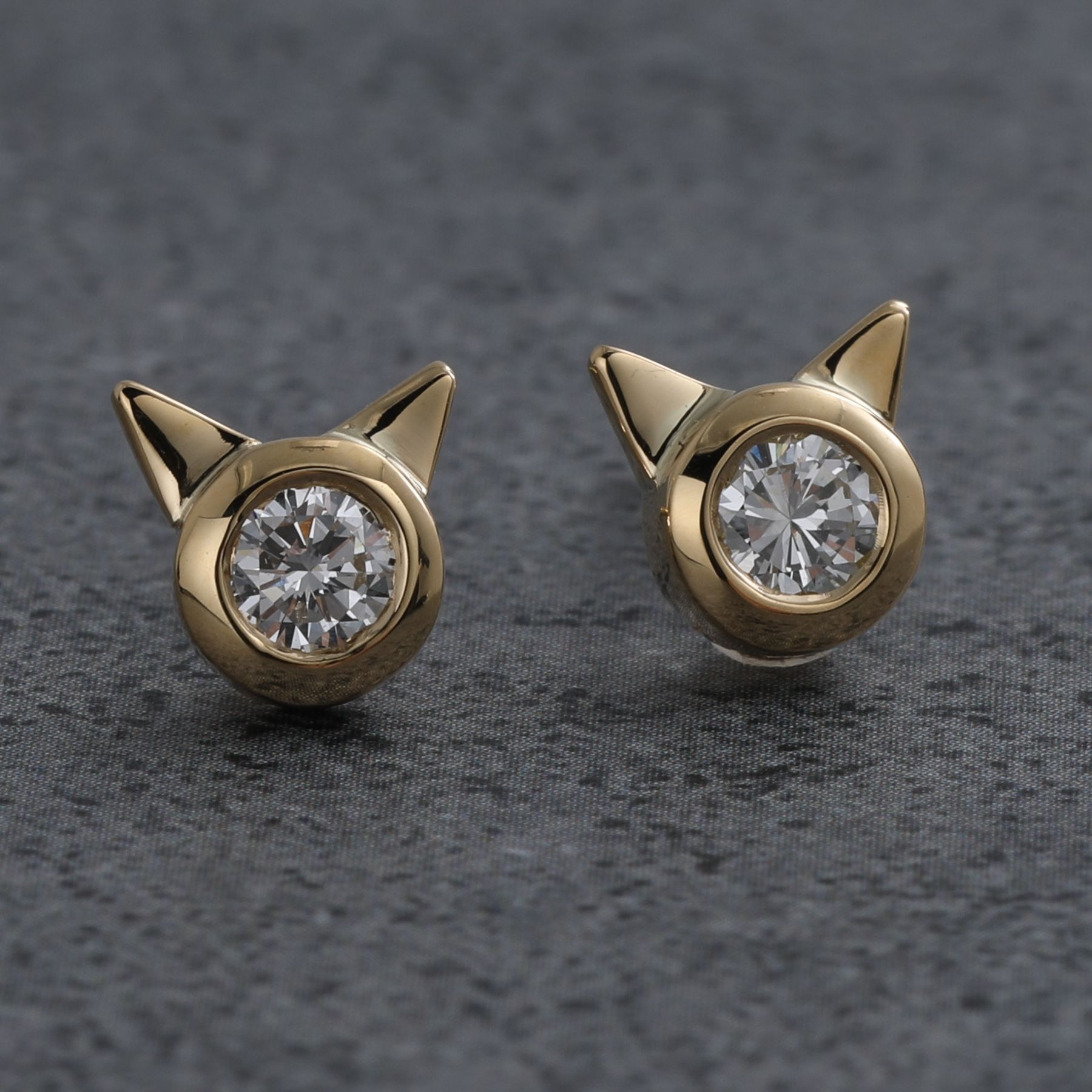 ネコが大好きなお客様よりご要望をいただき、特別にお仕立てした猫の耳をモチーフにしたピアスです。
