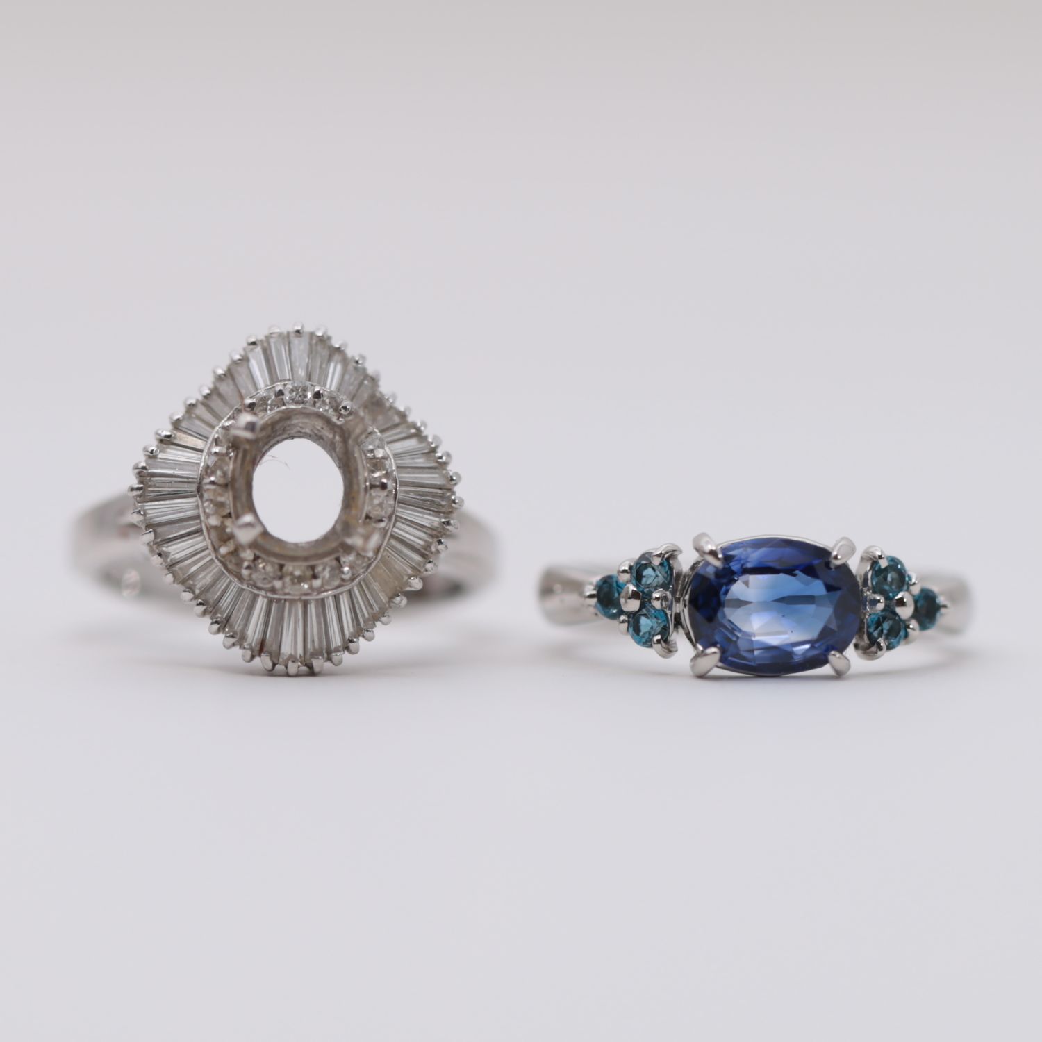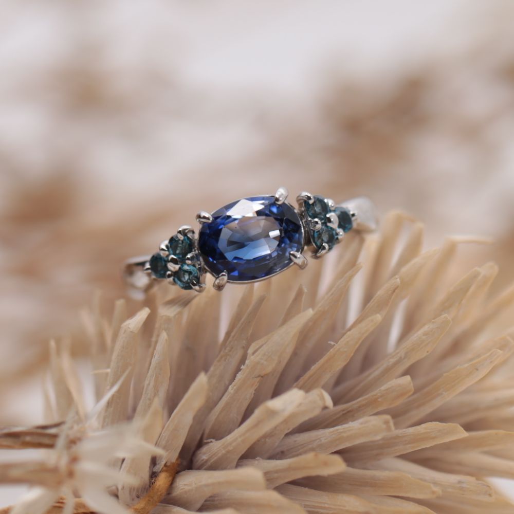 同じ“青”でありながら異なる表情を持つ二つの宝石が調和し、角度によって移ろう光の中で、繊細なコントラストをお楽しみいただけます。