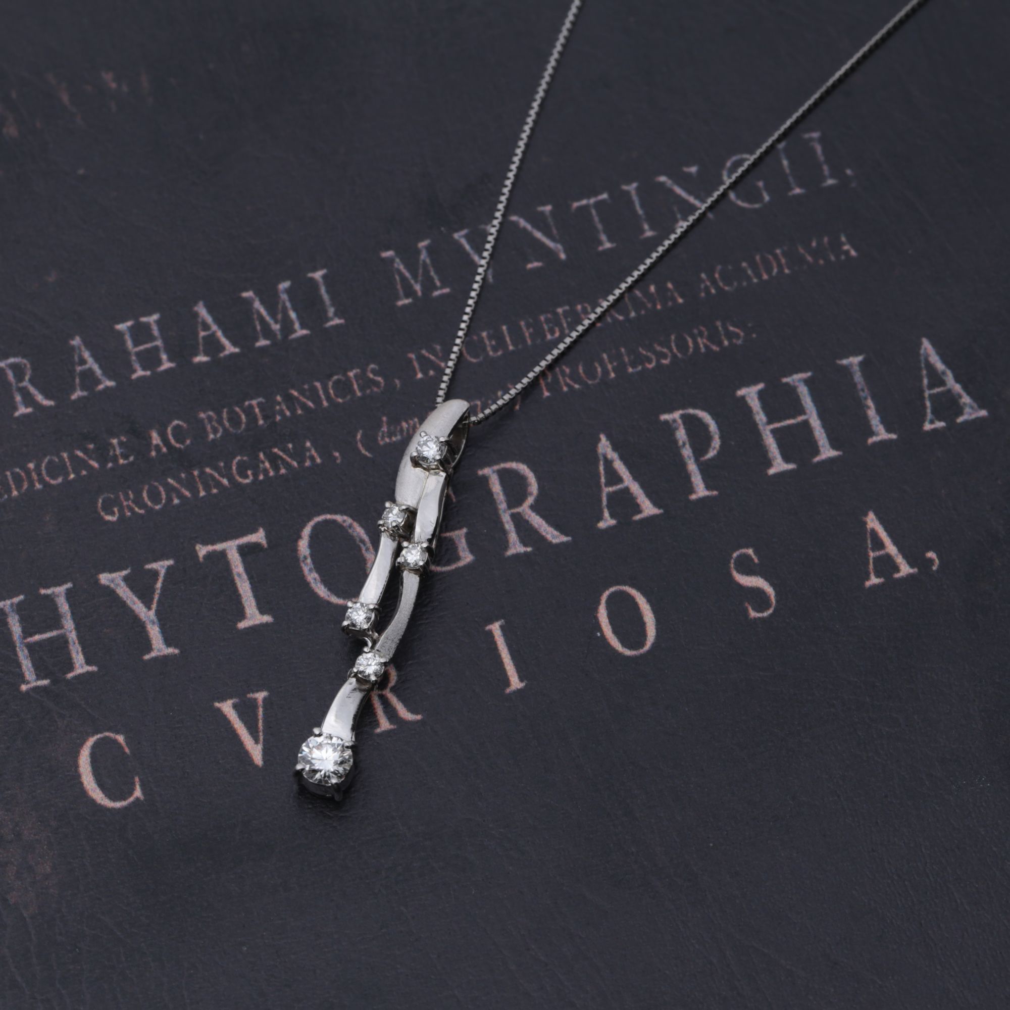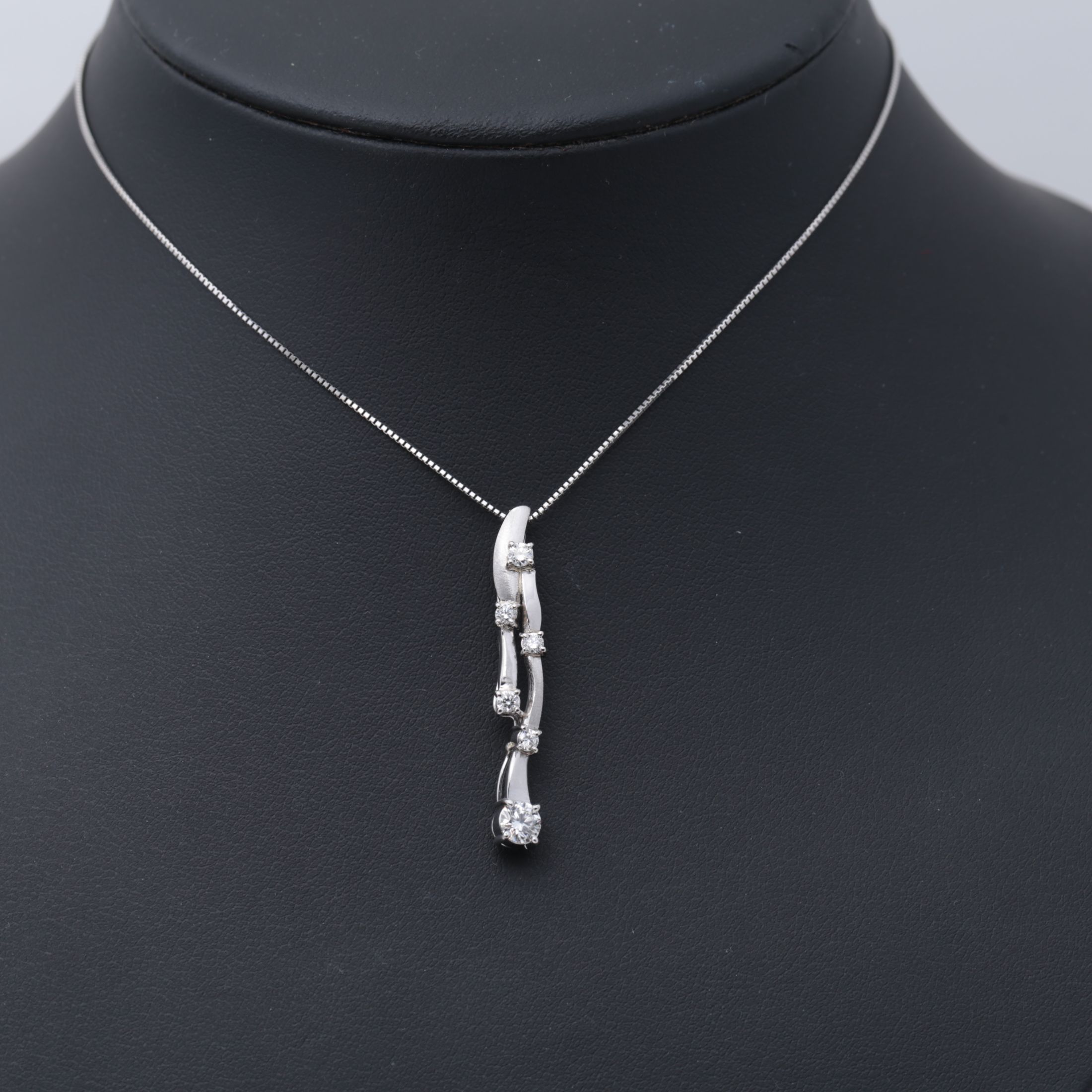 しなやかに流れる滝を思わせる、縦長のラインが印象的なペンダントです。