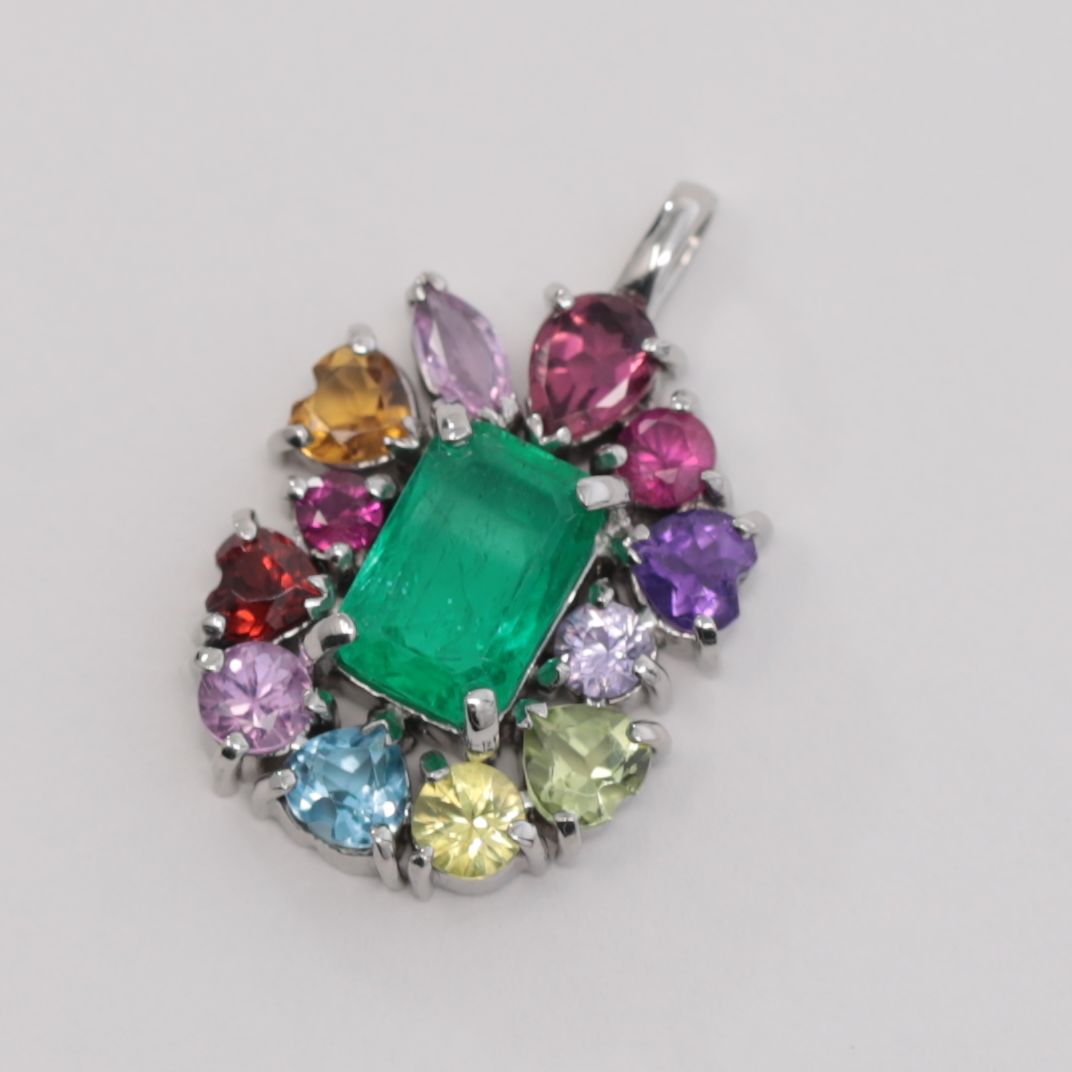 それぞれが大切な時間や想いを宿したストーンを集め、ひとつの物語としてまとめ上げた、Pt900製のペンダントトップです。