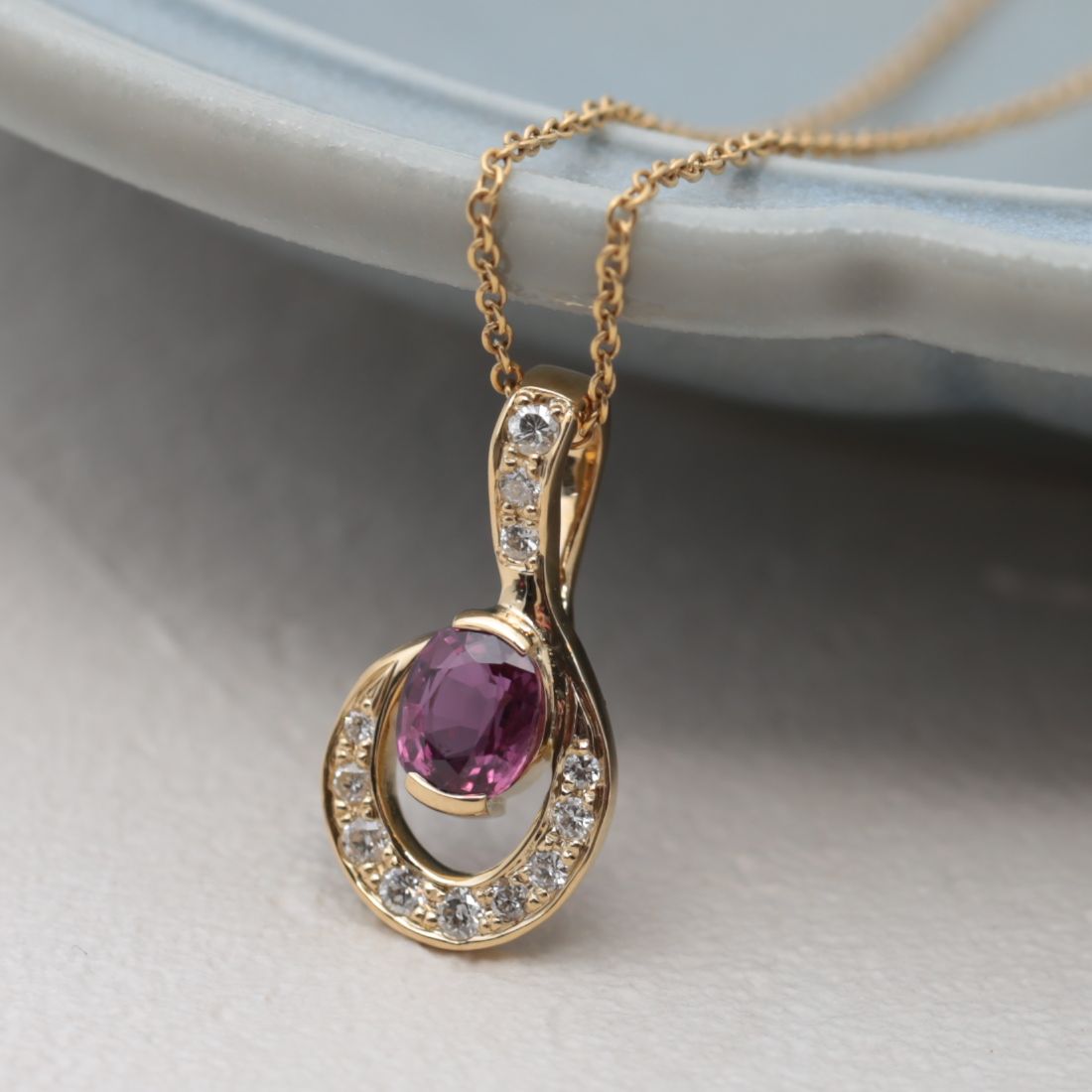 お客様よりお預かりした赤紫色の宝石リングを、ペンダントへとリモデルいたしました。
