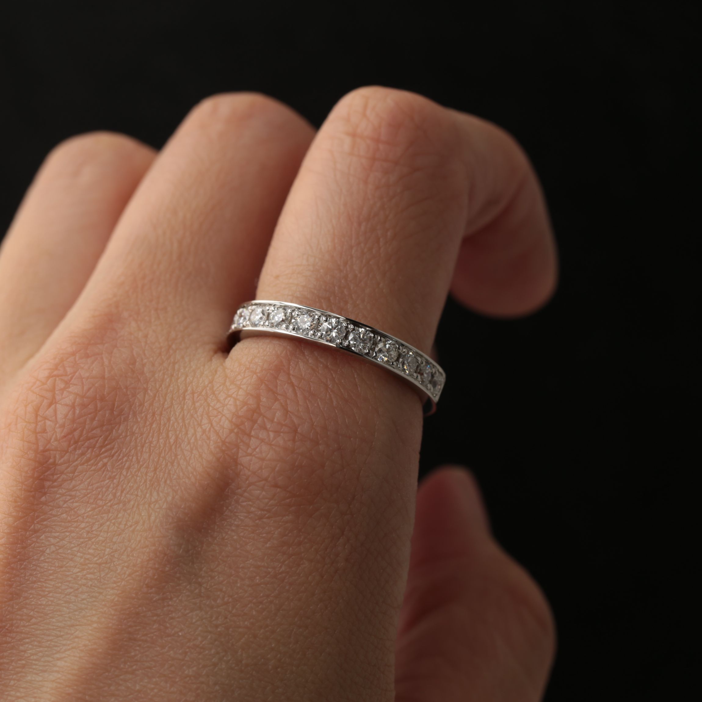 連なる輝きが指元に上品な華やぎを添え、日常の装いから特別なシーンまで幅広く寄り添うリングに仕上がりました。