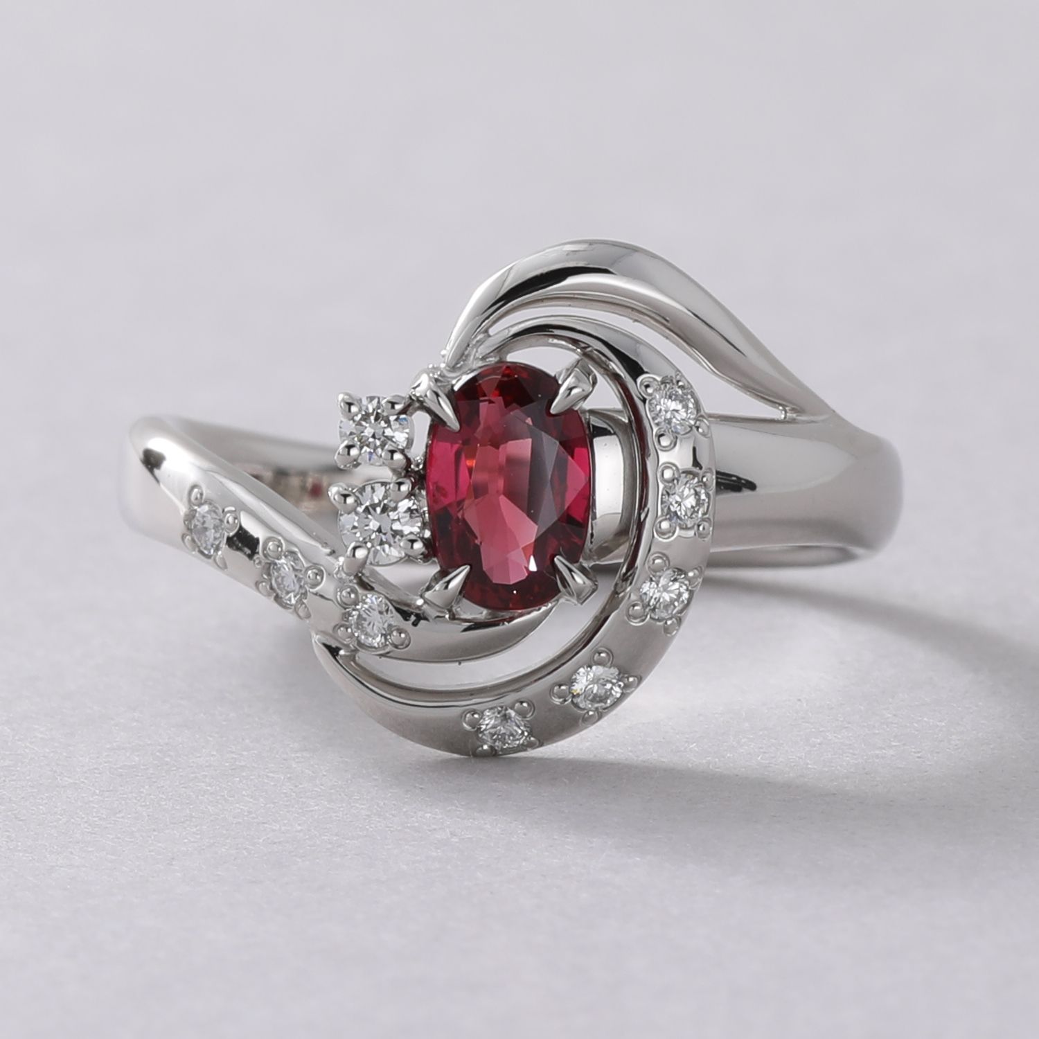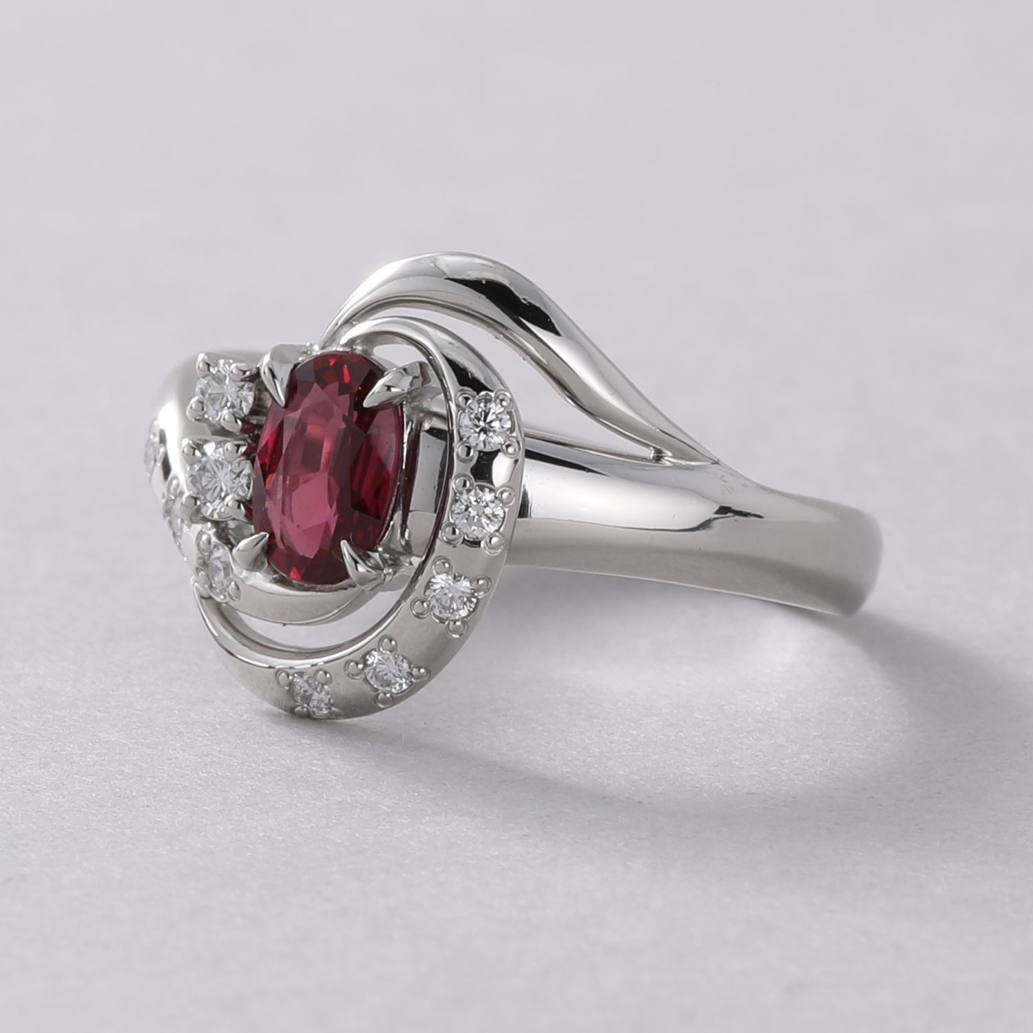 センターストーンのルビーは 0.640ctのオーバルカット。