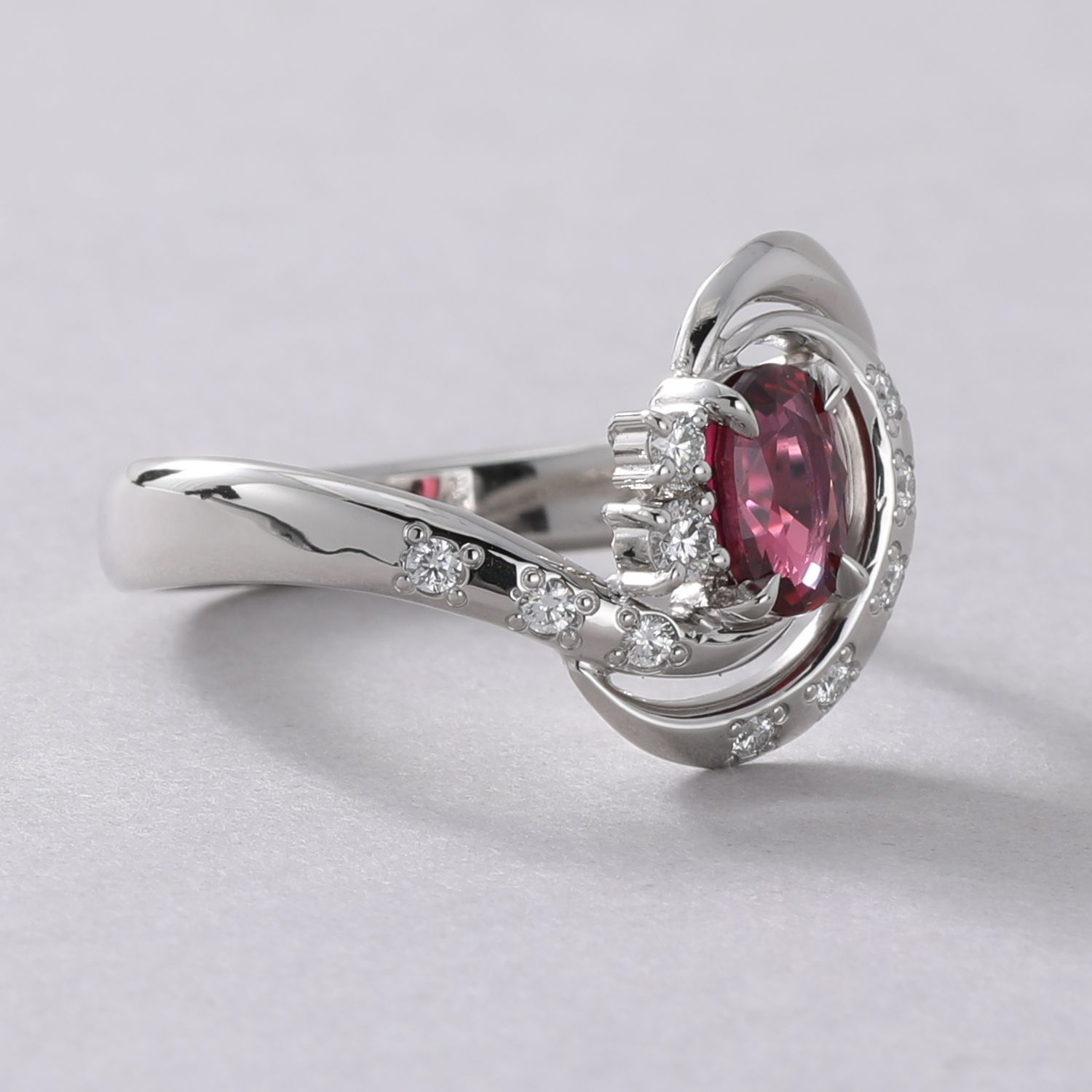 繊細に添えたメレダイヤモンドが、ルビーの深い紅色をより一層引き立てます。