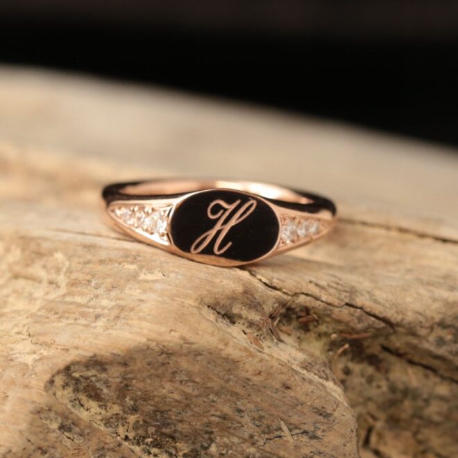ピンクゴールドのシグネットリング